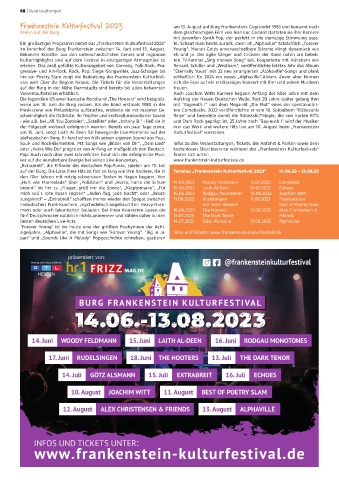 ker auf die wunderbare Energie bei seinen Live-Konzerten. www.frankenstein-kulturfestival.de