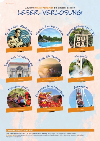 Unter allen Einsendungen, die uns bis zum Einsendeschluss erreichen, verlosen wir tolle Erlebnis- und Freizeit-Tickets.